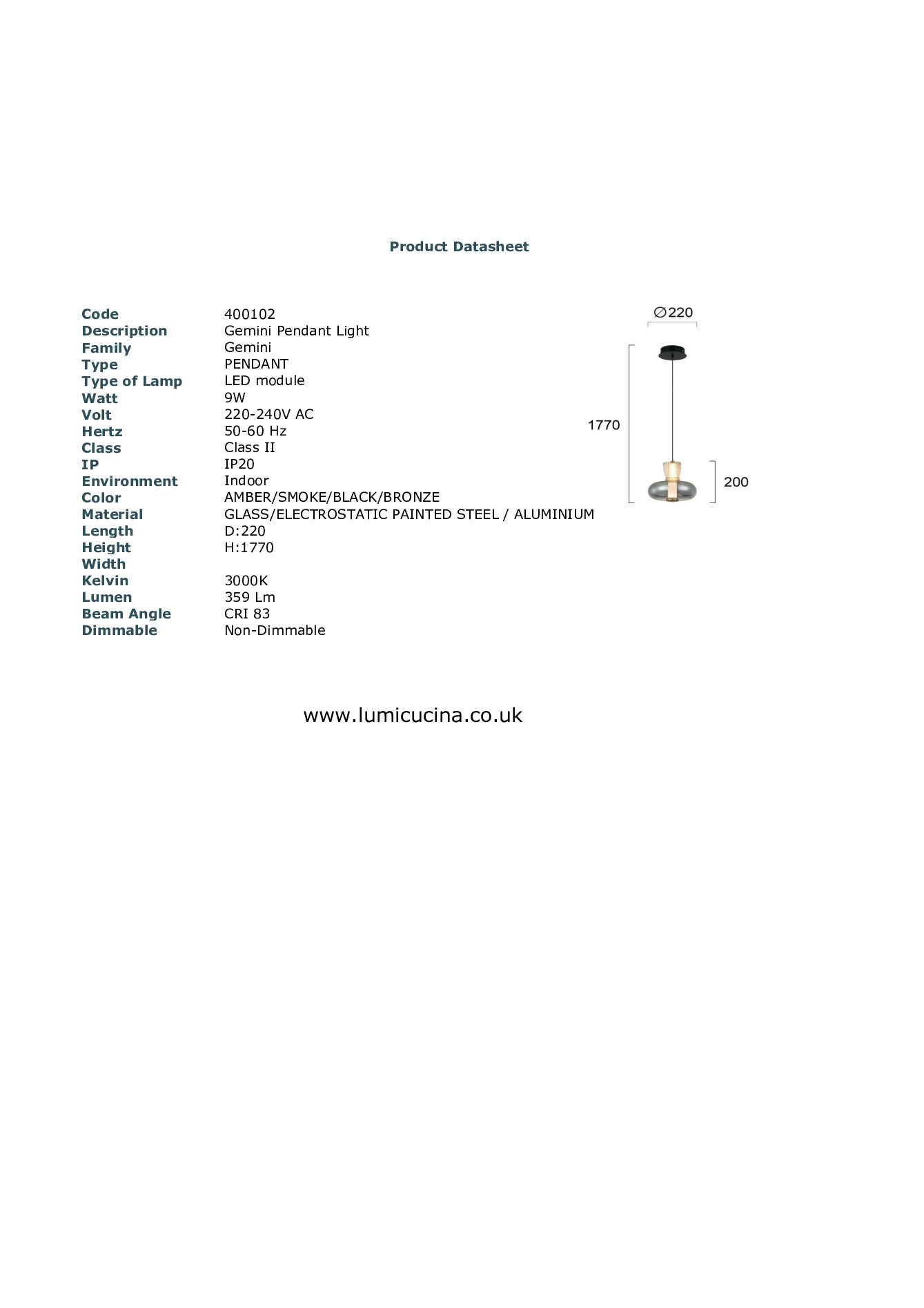 | Light Type | Pendant |